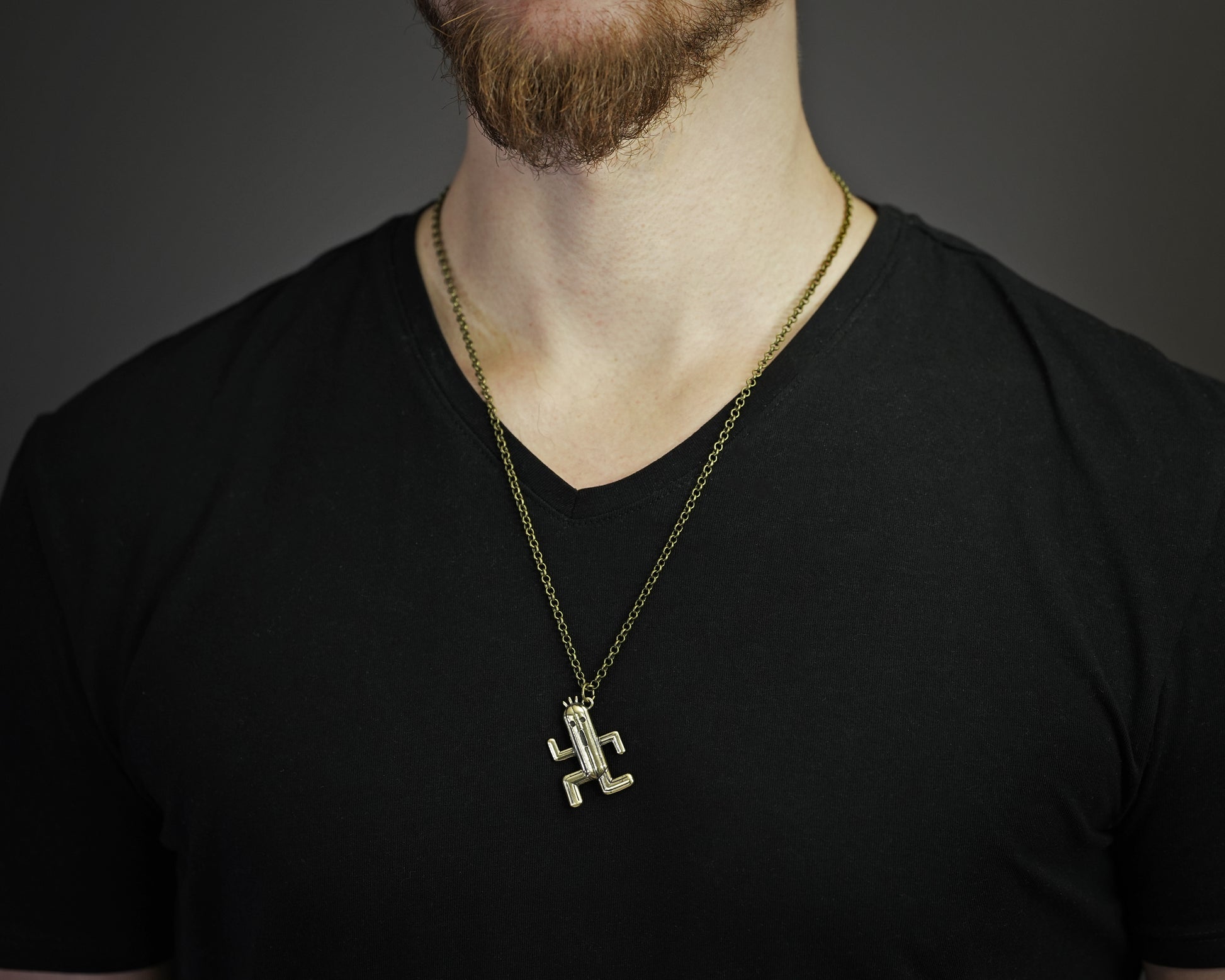 Celebrate the quirky charm of the iconic Cactuar with this unique Final Fantasy-inspired two-sided necklace! Perfect for fans of the beloved game series, this pendant captures the playful essence of the speedy little creature. Meticulously crafted, the Cactuar features detailed etchings that bring its signature spiky shape, quirky arms, and expressive face to life.