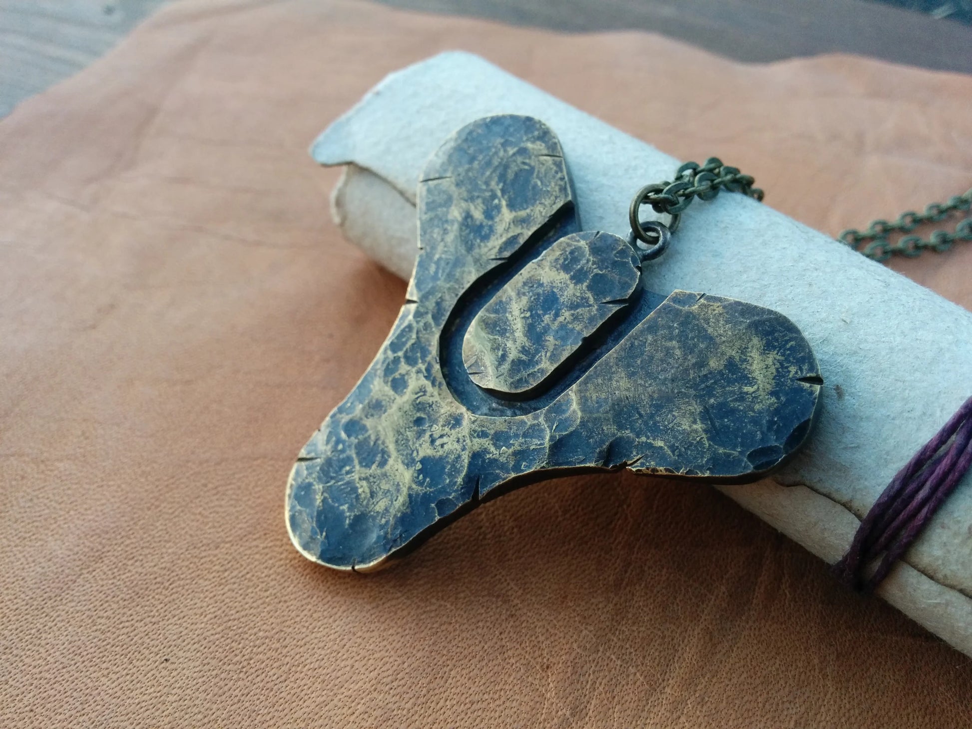 925 Sterling Silver / Brass Destiny Tricorn Pendant Necklace Jewelry Charm Amulet