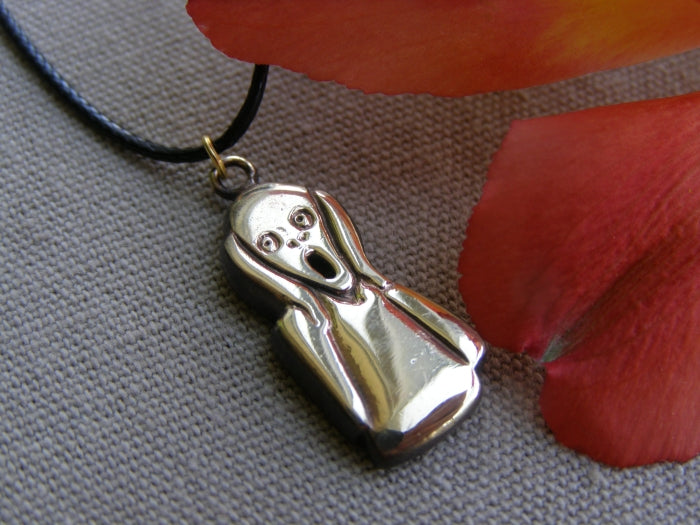 Make a striking impression with this stunning necklace inspired by Edvard Munch's iconic masterpiece, The Scream. This unique piece blends art and fashion, featuring a beautifully crafted pendant that captures the raw emotion and expressive lines of Munch's timeless work.
