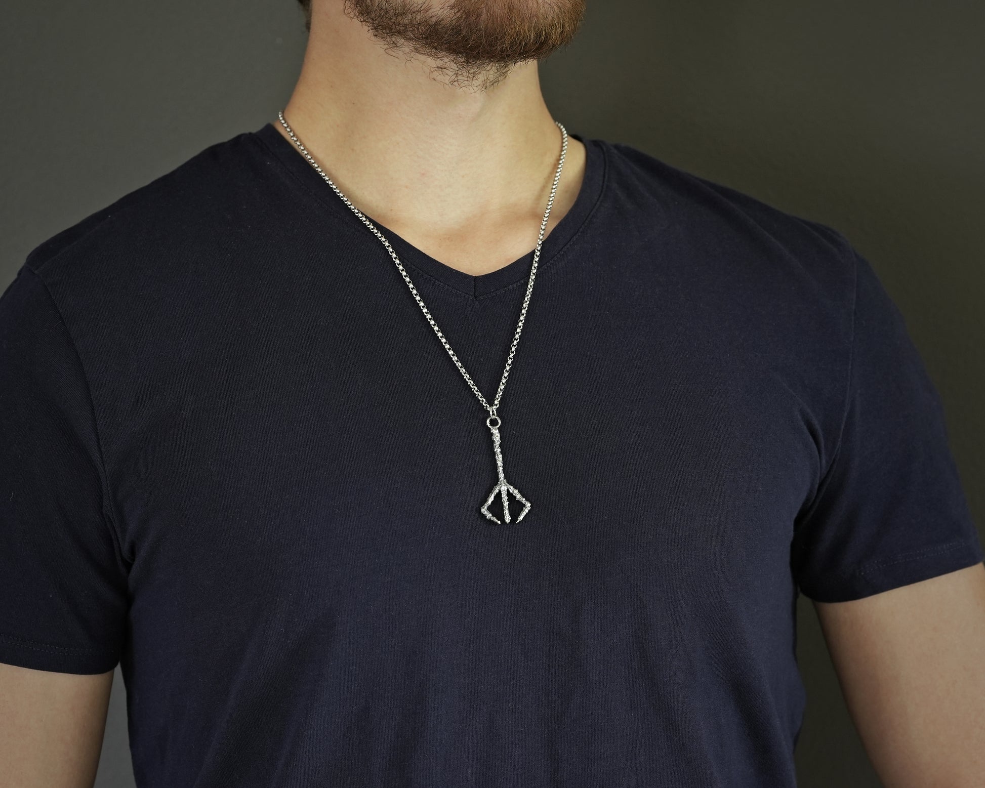 This handcrafted necklace features the iconic Caryll Hunter Rune, inspired by Bloodborne. Forged in brass or silver, aged and darkened by hand, it captures the raw, arcane feel of Yharnam's nightmarish world. Whether you're a true Hunter or simply drawn to gothic fantasy, this pendant is a subtle but powerful nod to the strength, will, and endurance the rune symbolizes.