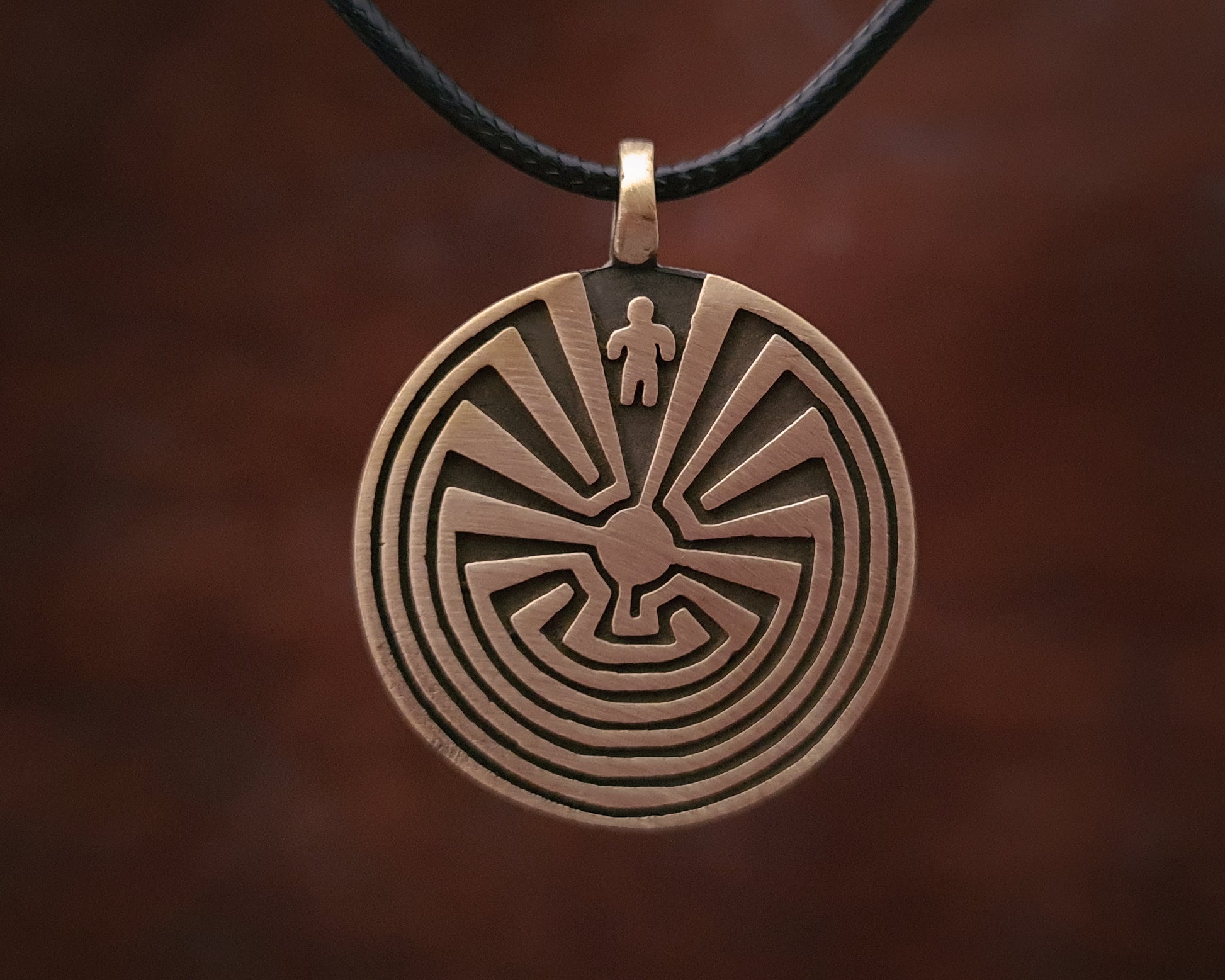 Litoi Man in Maze Labyrinth Necklace Pendant Amulet Maze Jewelry
