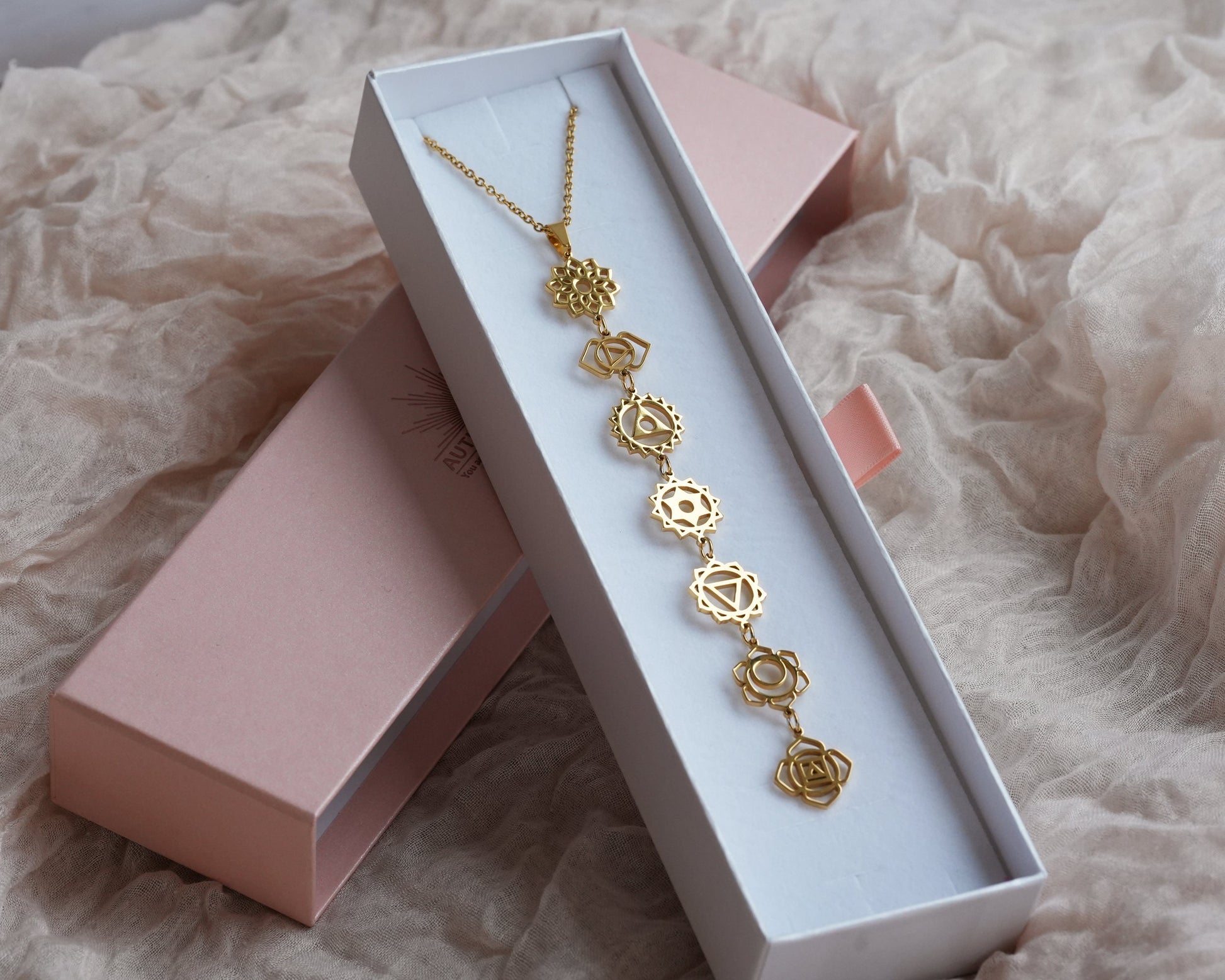 Sieben-Chakra-Halskette für Frauen, vergoldet, mit Kette, spiritueller Yoga-Achtsamkeitsschmuck in einer Geschenkbox