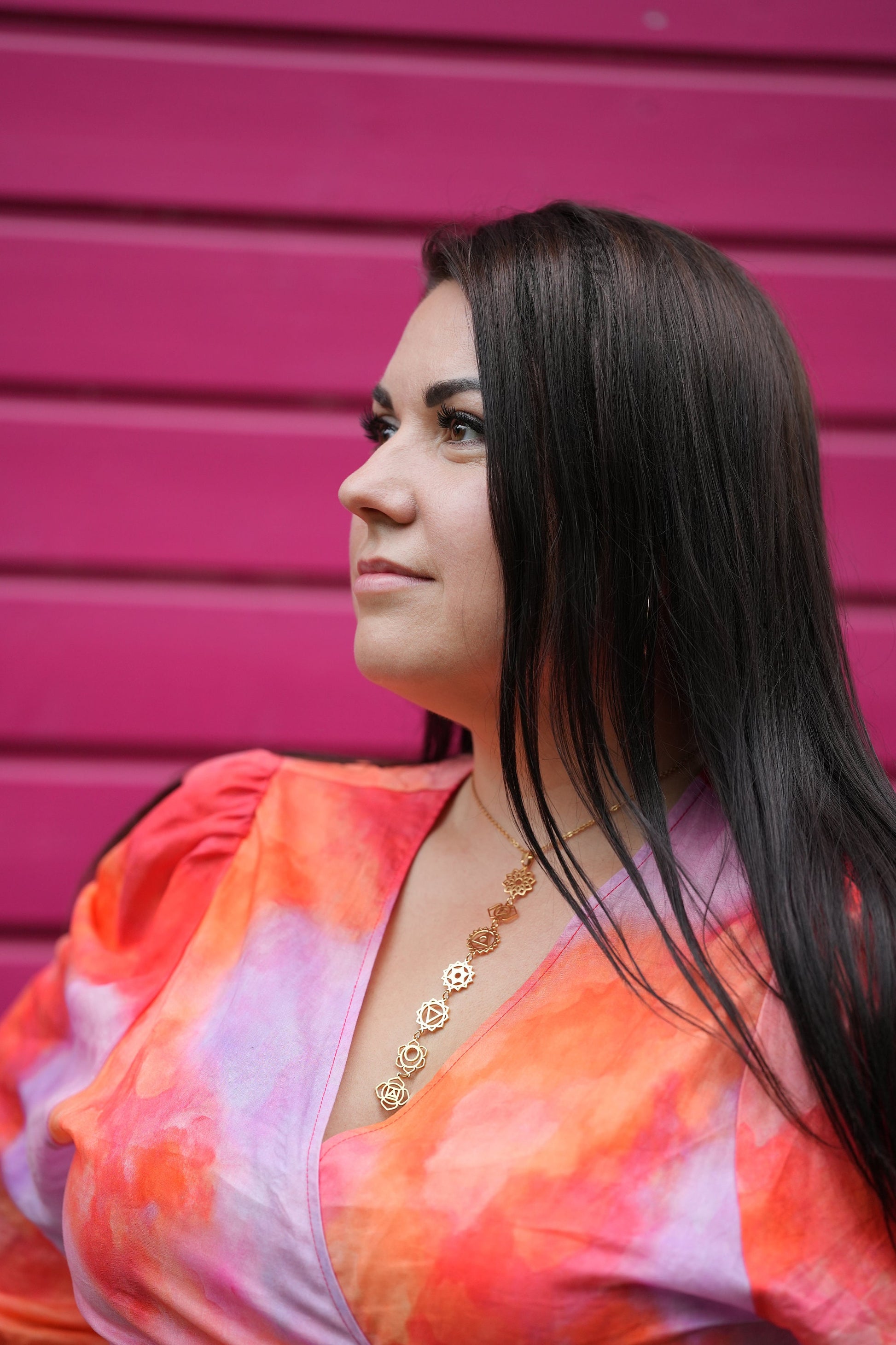 Erweitern Sie Ihre spirituelle Reise und Ihren Stil mit dieser exquisiten vergoldeten 7-Chakra-Halskette. Jeder Anhänger ist aufwendig gestaltet, um die sieben Chakren darzustellen und auszugleichen und so ganzheitliches Wohlbefinden und innere Harmonie zu fördern.
