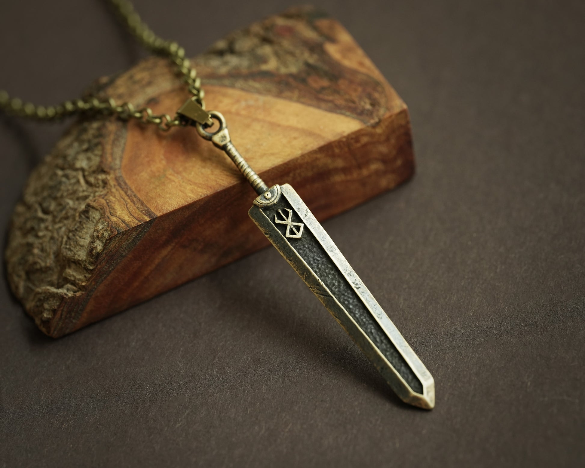 Berserk Brand of Sacrifice Drachentöterschwert Schwarze Rune Anime Halskette Anhänger Schmuck Fantasy Cosplay Geschenk für Männer Frauen