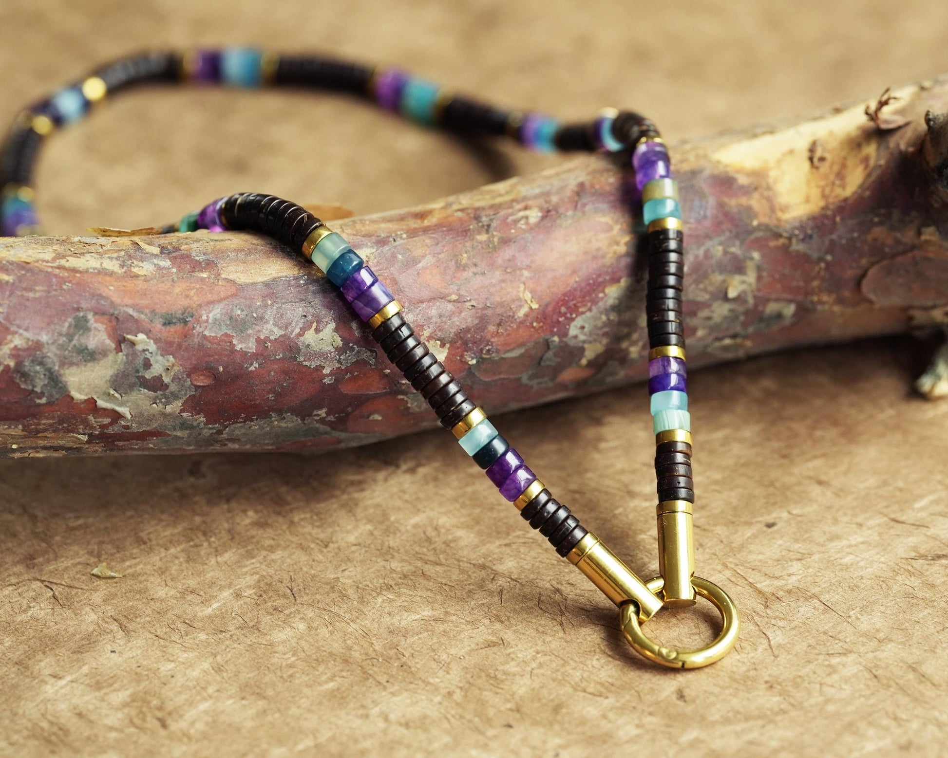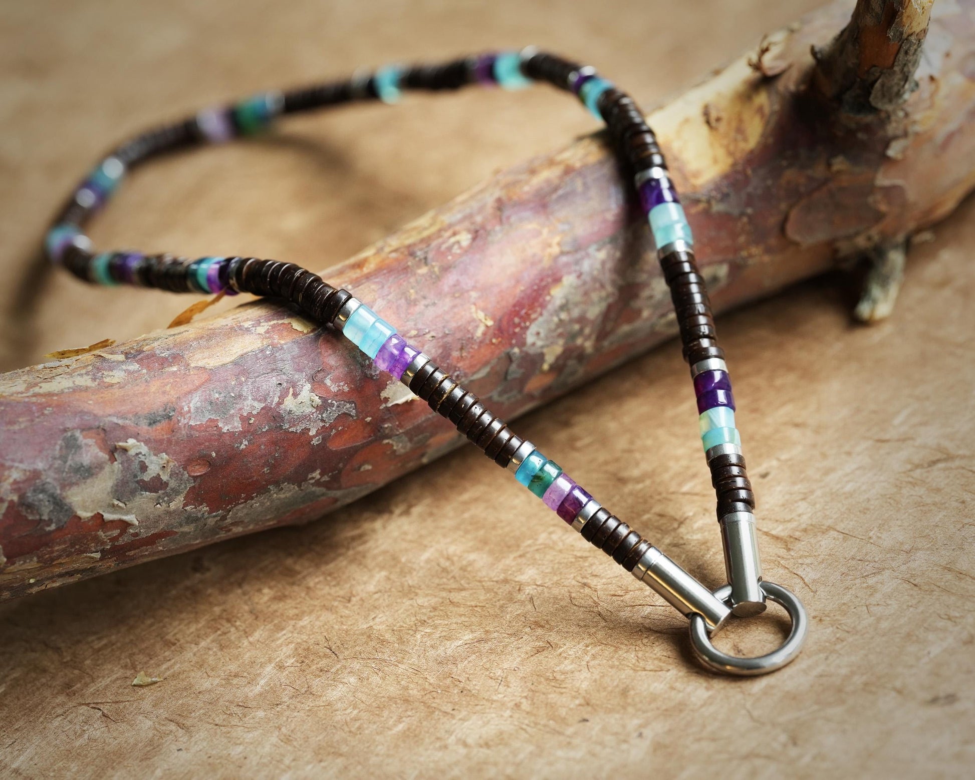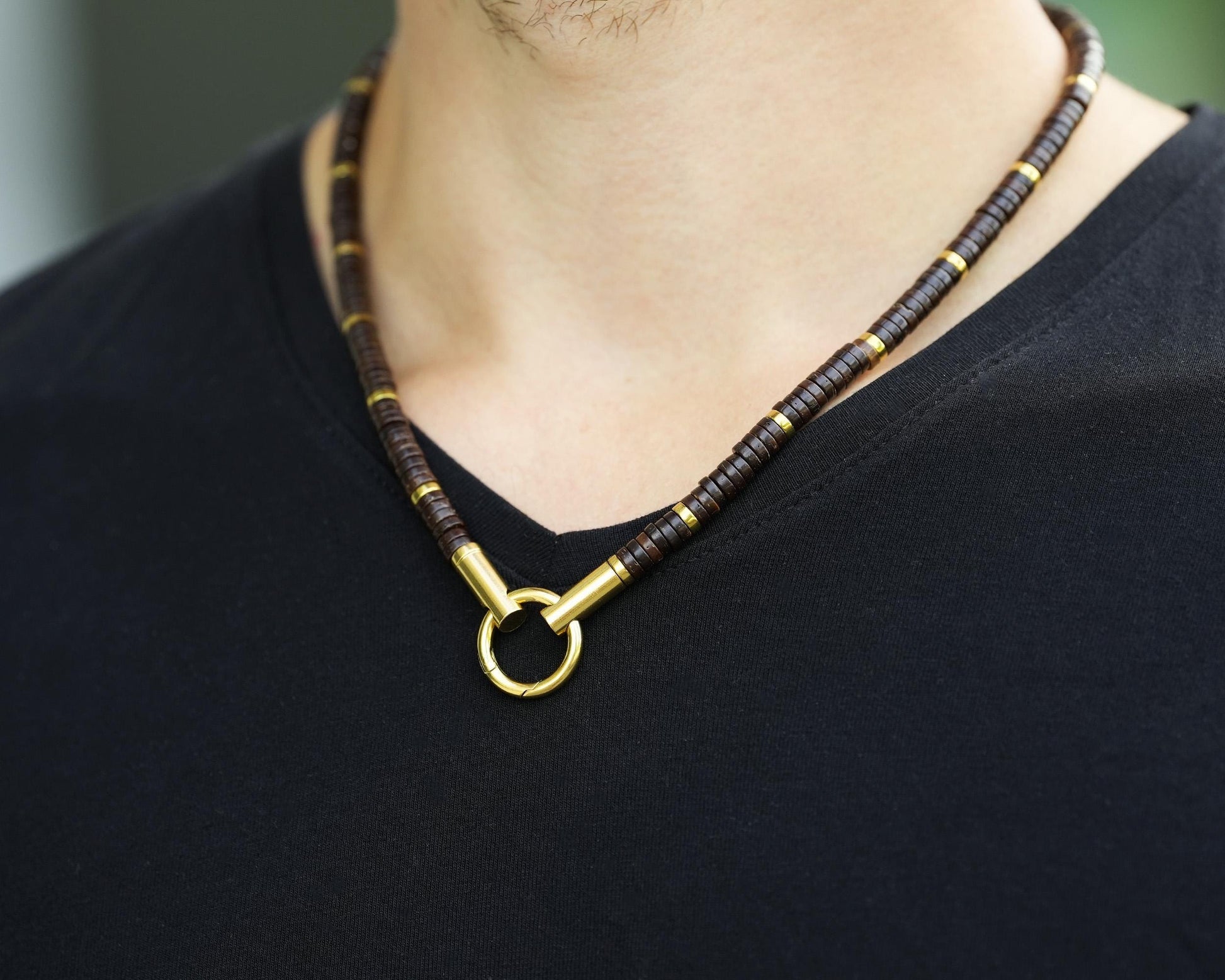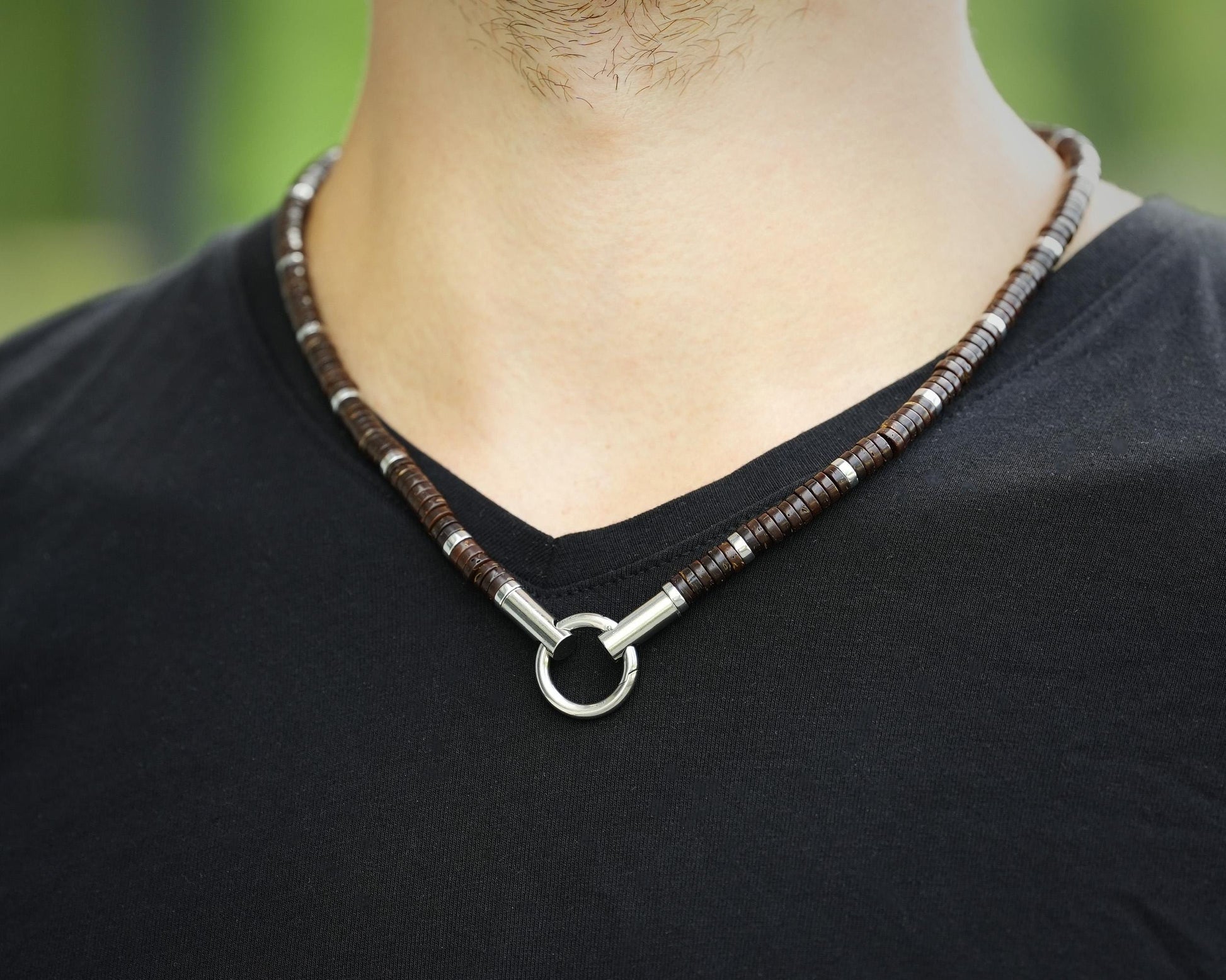 Mens Beaded Surfer Necklace African Bohemian Bead Choker Gift For Men Viking Chain with Stainless Steel Rounded Spring Clasp Coconut Beads