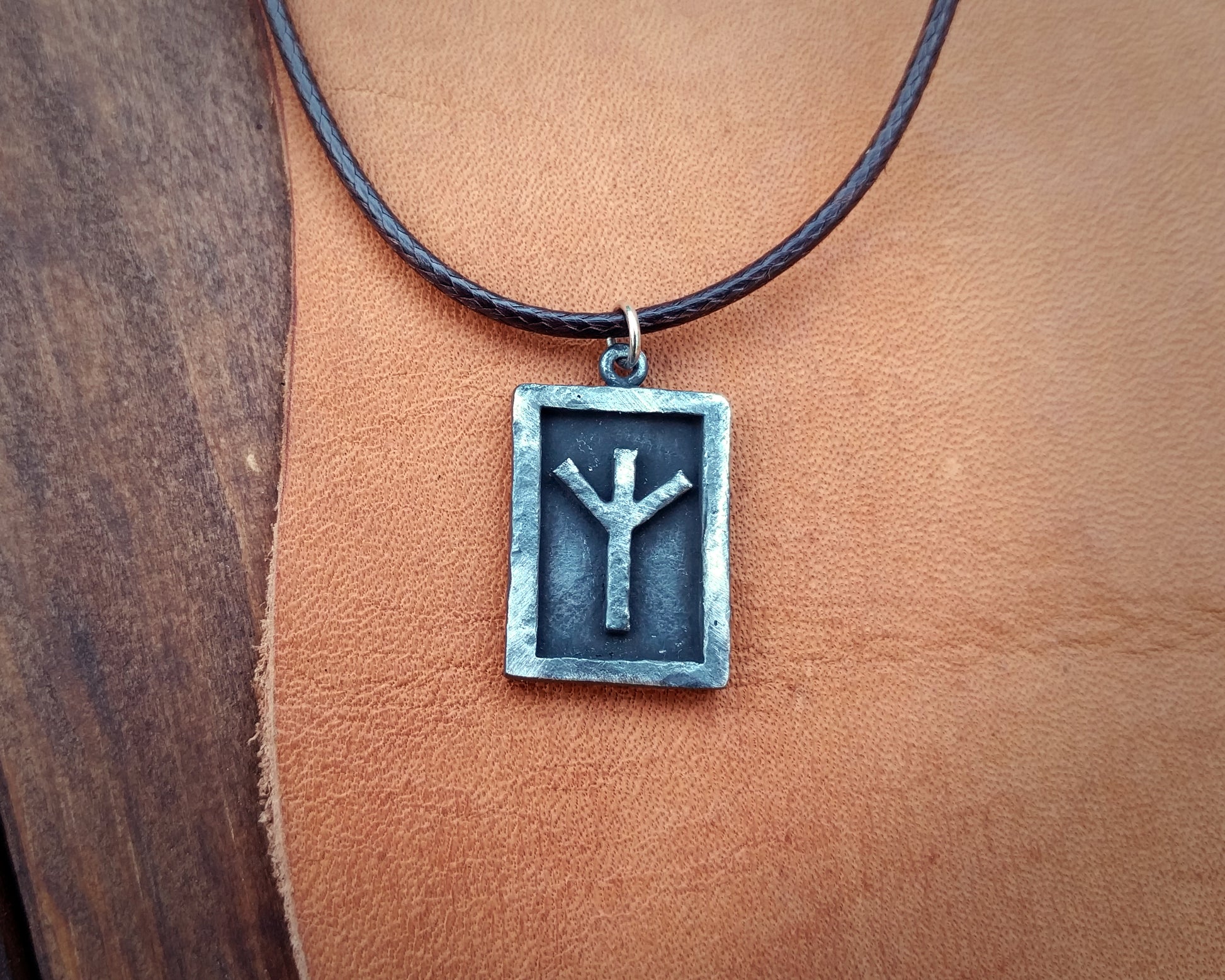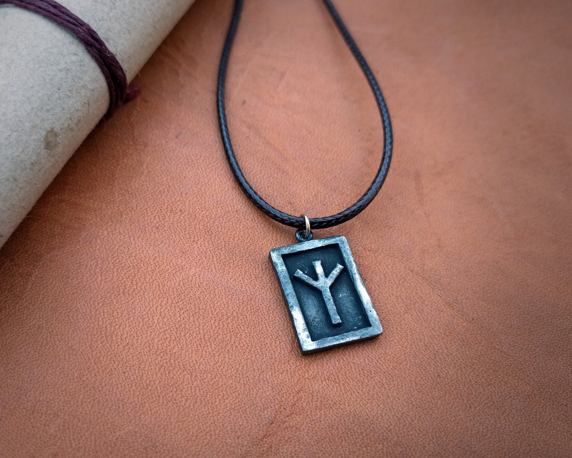 Viking Algiz / Elhaz Rune Pendant - Protection - Argent - Viking Norse Jewelry Collier Pendentif Runic Alphabet Runes avec chaîne réglable