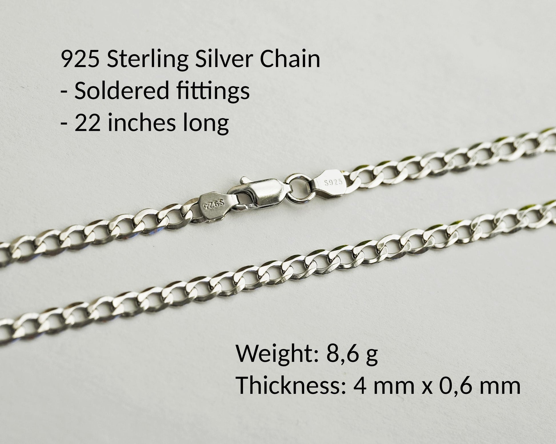 925 Sterling Silver Curb Cuban Chain with soldered fittings 22 inches 4mm